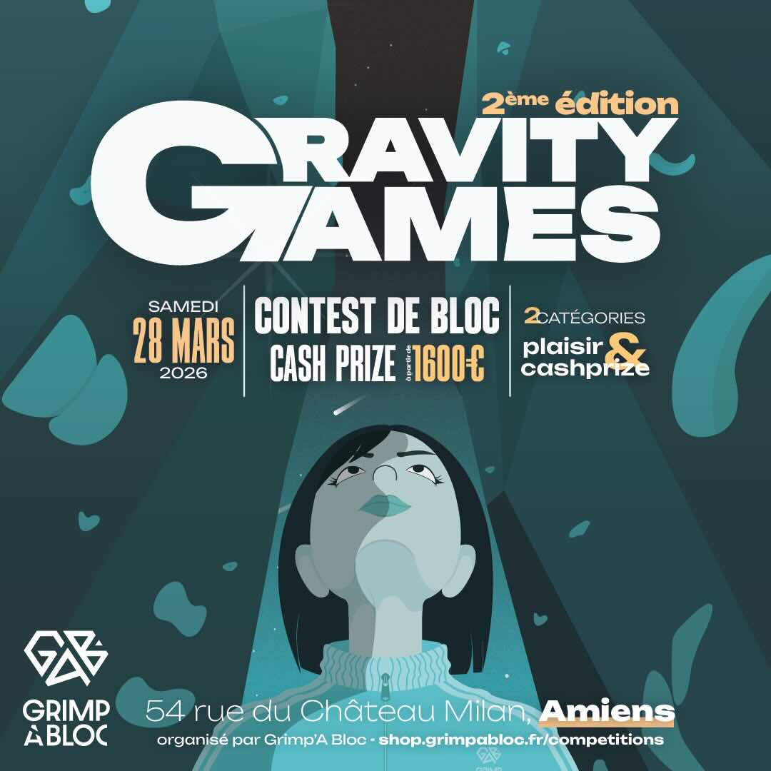 Les inscriptions se font en ligne (clique sur le bouton ci-dessous), ou directement à l’accueil escalade de Grimp’A Bloc !
